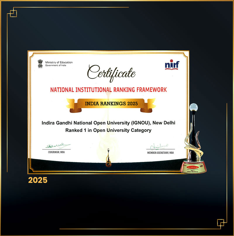 No. 1 Rank in the NIRF Ranking 2025 in the Open University Category for the year 2025